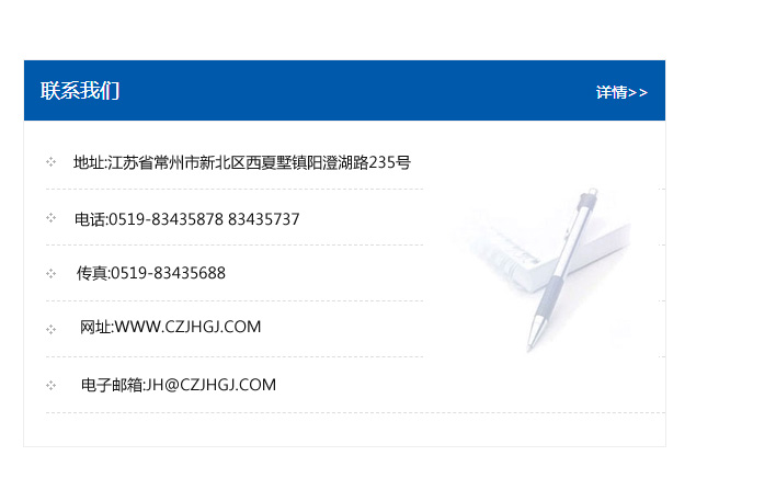 傳真:0519-83435688    郵編:213135    網址:WWW.czjhgj_com.jy74zx.com    電子郵箱:JH@czjhgj_com.jy74zx.com